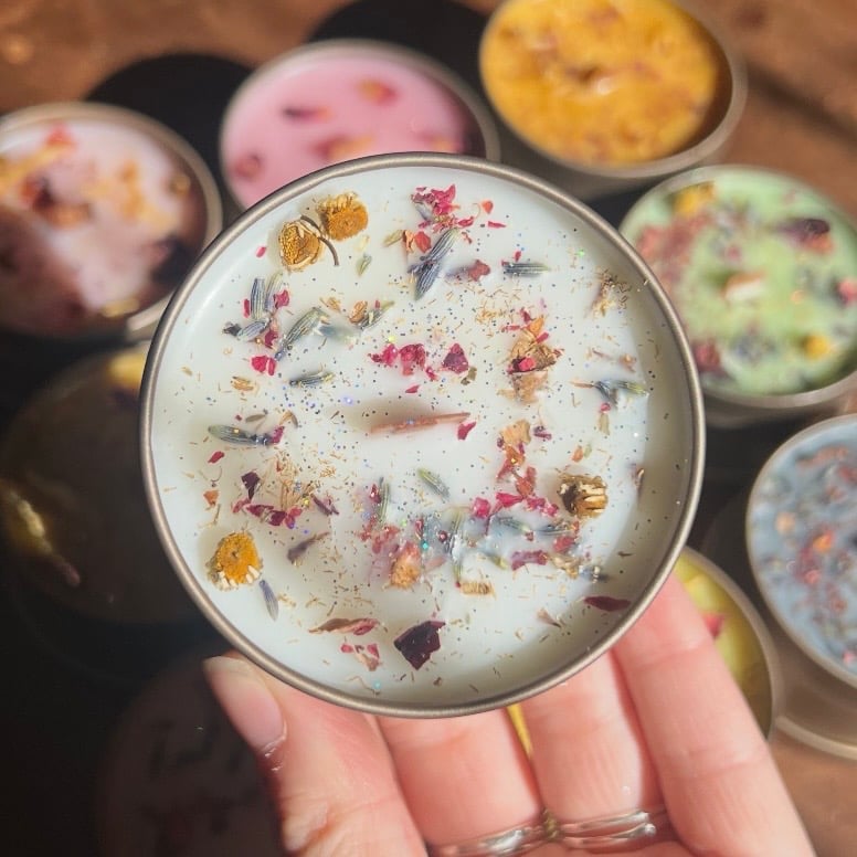 these 4oz tins come with a lid and can burn for up to 30 hours with proper candle care! 🕯️