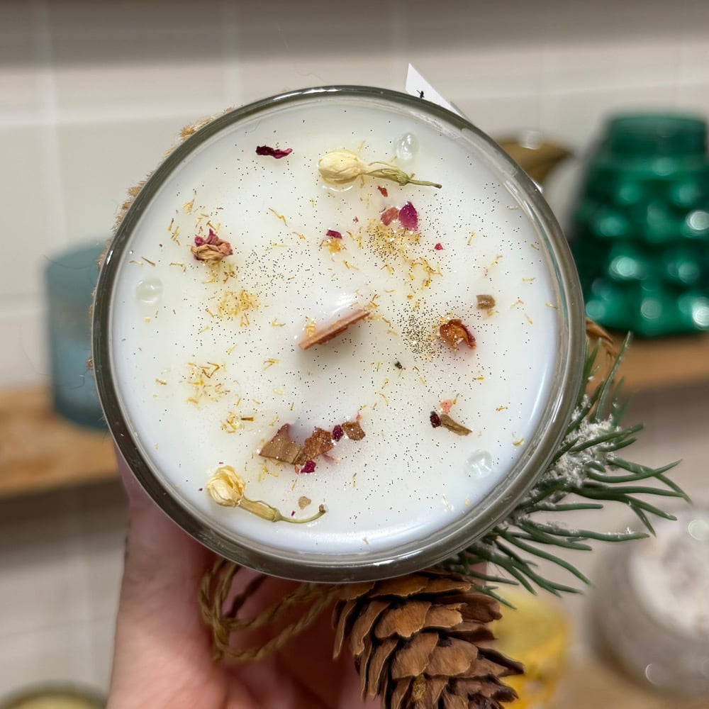 reusable and refillable container, clean burning coconut wax, crackling wood wicks, paraben + phthalate free fragrances, vegan