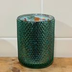 reusable and refillable container, clean burning coconut wax, crackling wood wicks, paraben + phthalate free fragrances, vegan