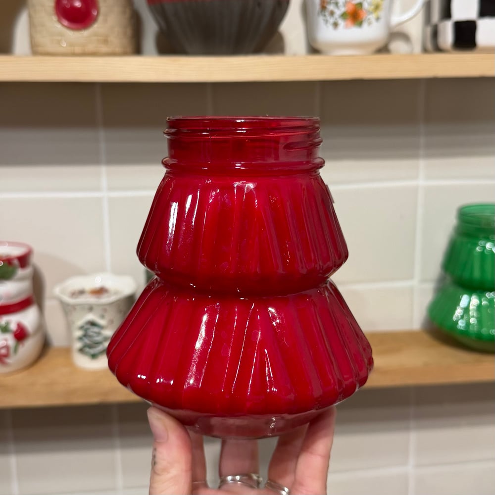 the red candle is apple rind + cinnamon scented! π