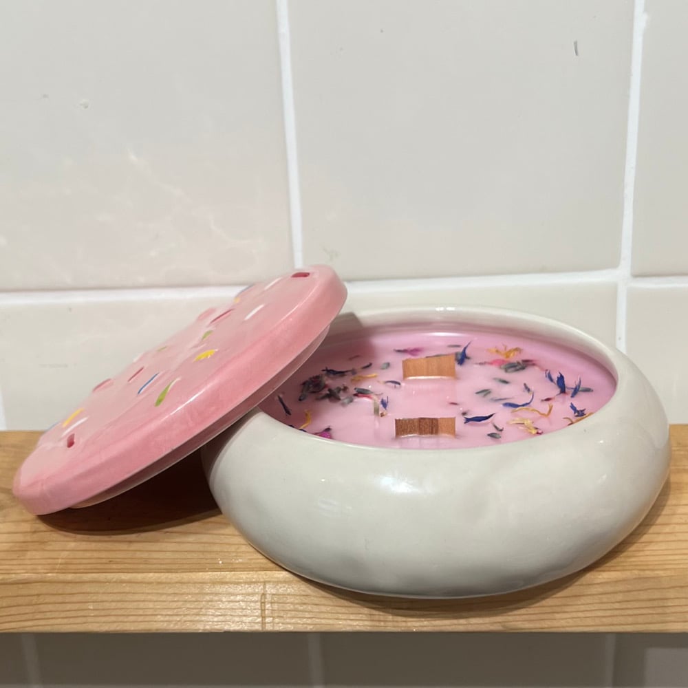 I topped this cutie candle off with lavender, blue cornflower, calendula and fine glitter ✨