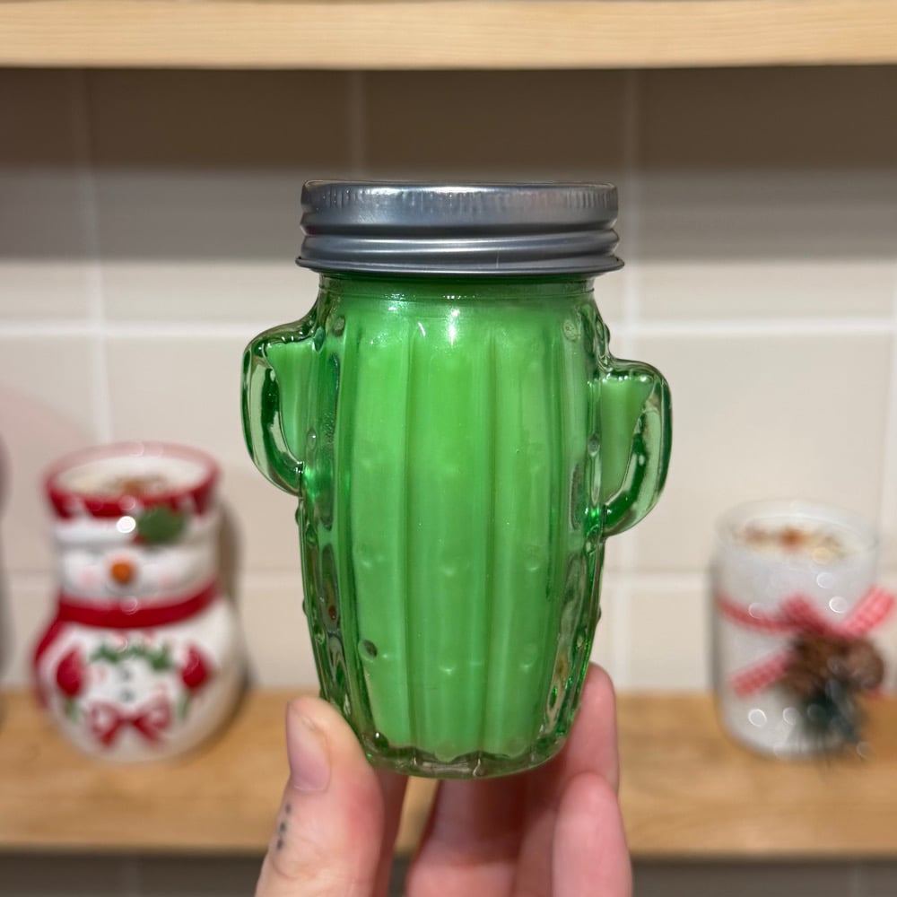 this listing is for a mini saguaro cactus candle in your choice of scent! these cactus shaped mason jars are sooooo cute and reusable! 🌵