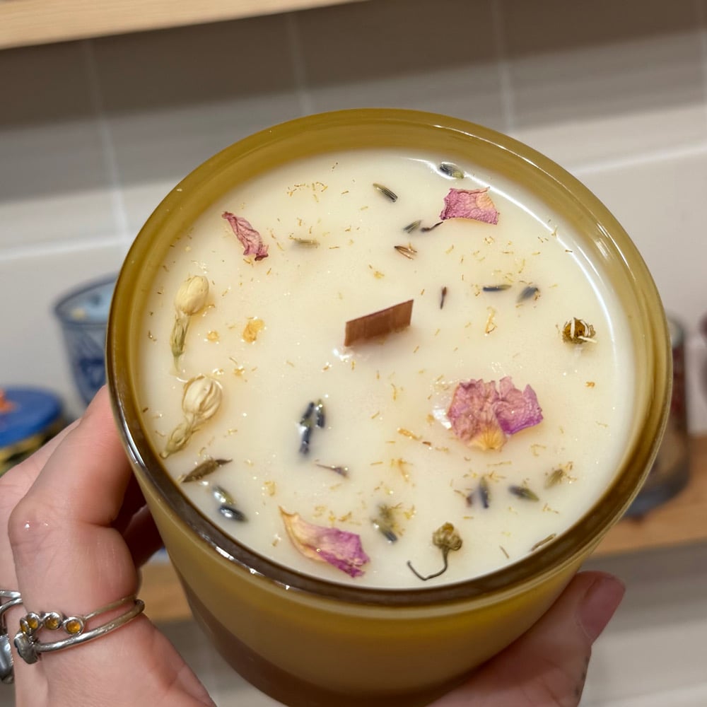 reusable and refillable container, clean burning coconut wax, crackling wood wicks, paraben + phthalate free fragrances, vegan
